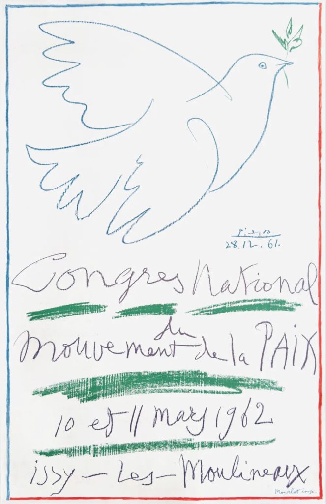 Picasso, salah seorang seniman paling berpengaruh pada abad ke-20, telah mengharungi dua perang dunia, iaitu Perang Saudara Sepanyol dan awal Perang Dingin. Seninya menjadi respons yang kuat terhadap keganasan, penderitaan manusia dan usaha global untuk keamanan. Jauh melangkaui ekspresi peribadi, karya Picasso berfungsi sebagai suara awam menentang perang, menggunakan simbol berulang seperti burung merpati, sejambak bunga dan wajah manusia untuk menyampaikan harapan dan maruah.
